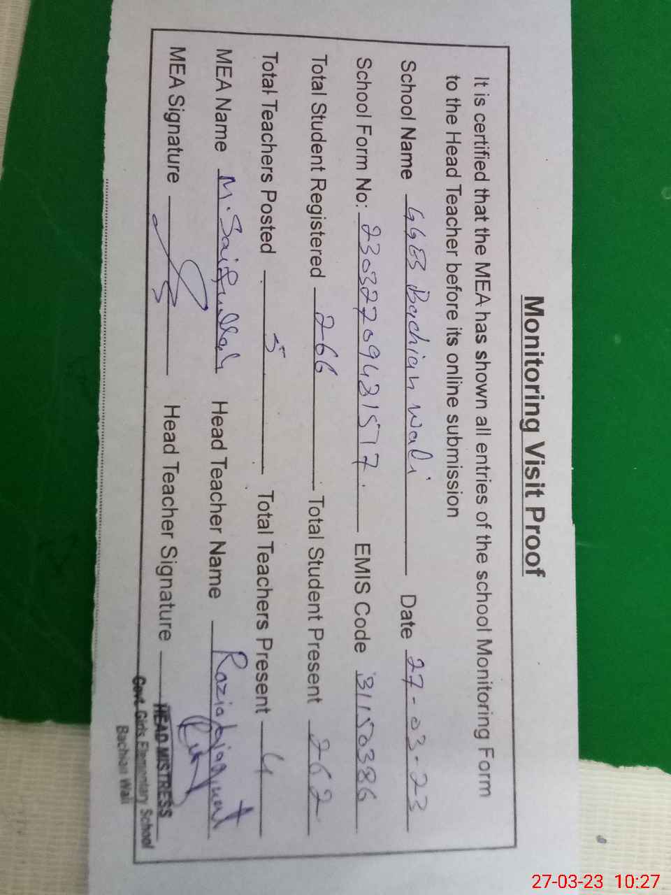 | EMIS Code: 31150386 | Name of School: GGES BACHIAN WALI | |||