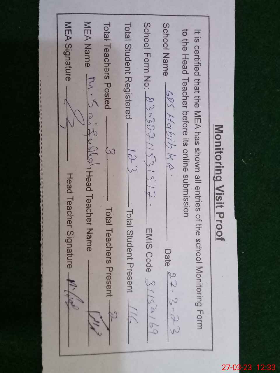 | EMIS Code: 31150169 | Name of School: GPS HABIB KA | |||
