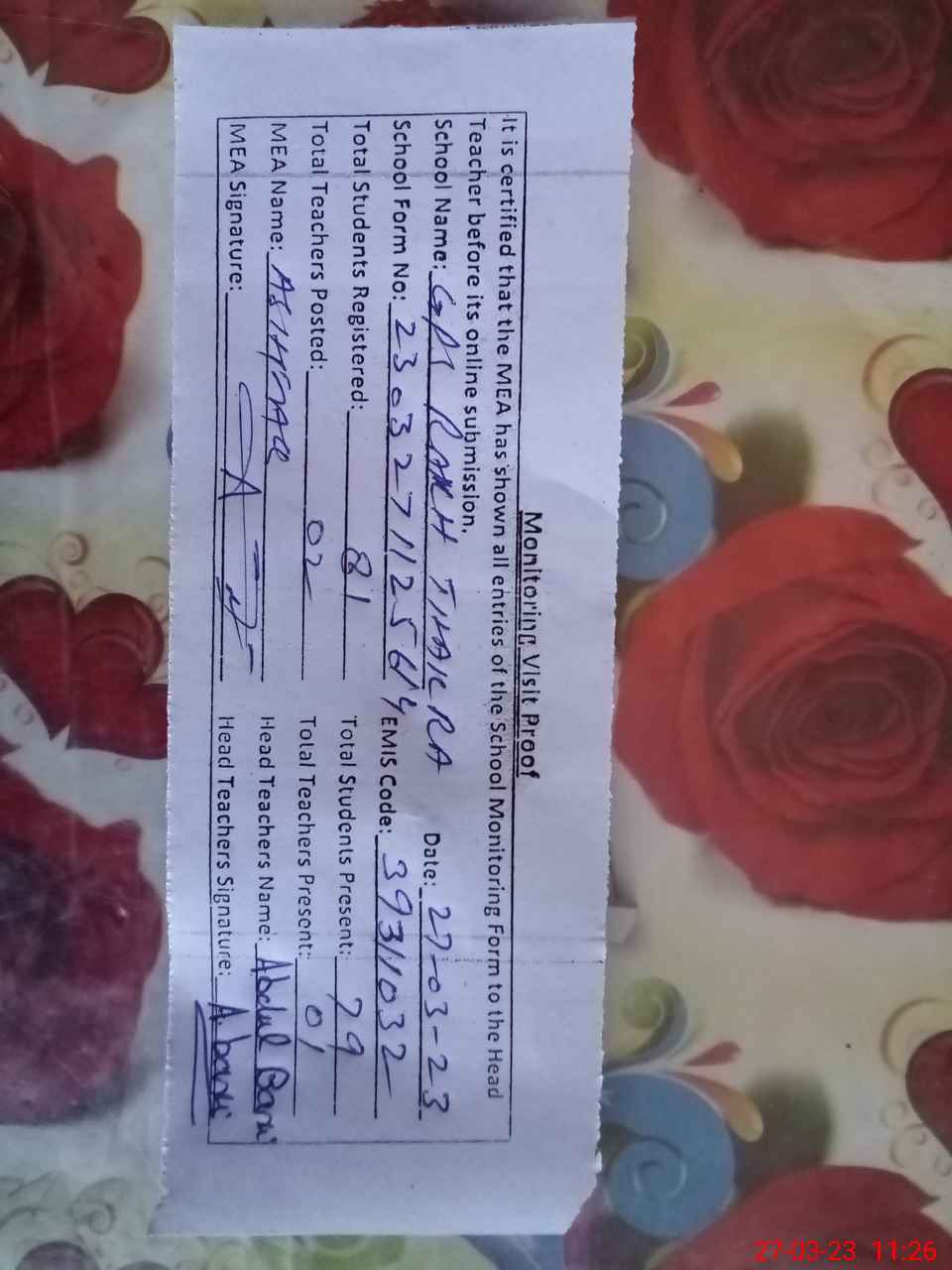 | EMIS Code: 39311032 | Name of School: GPS RAKH THAKRA | |||