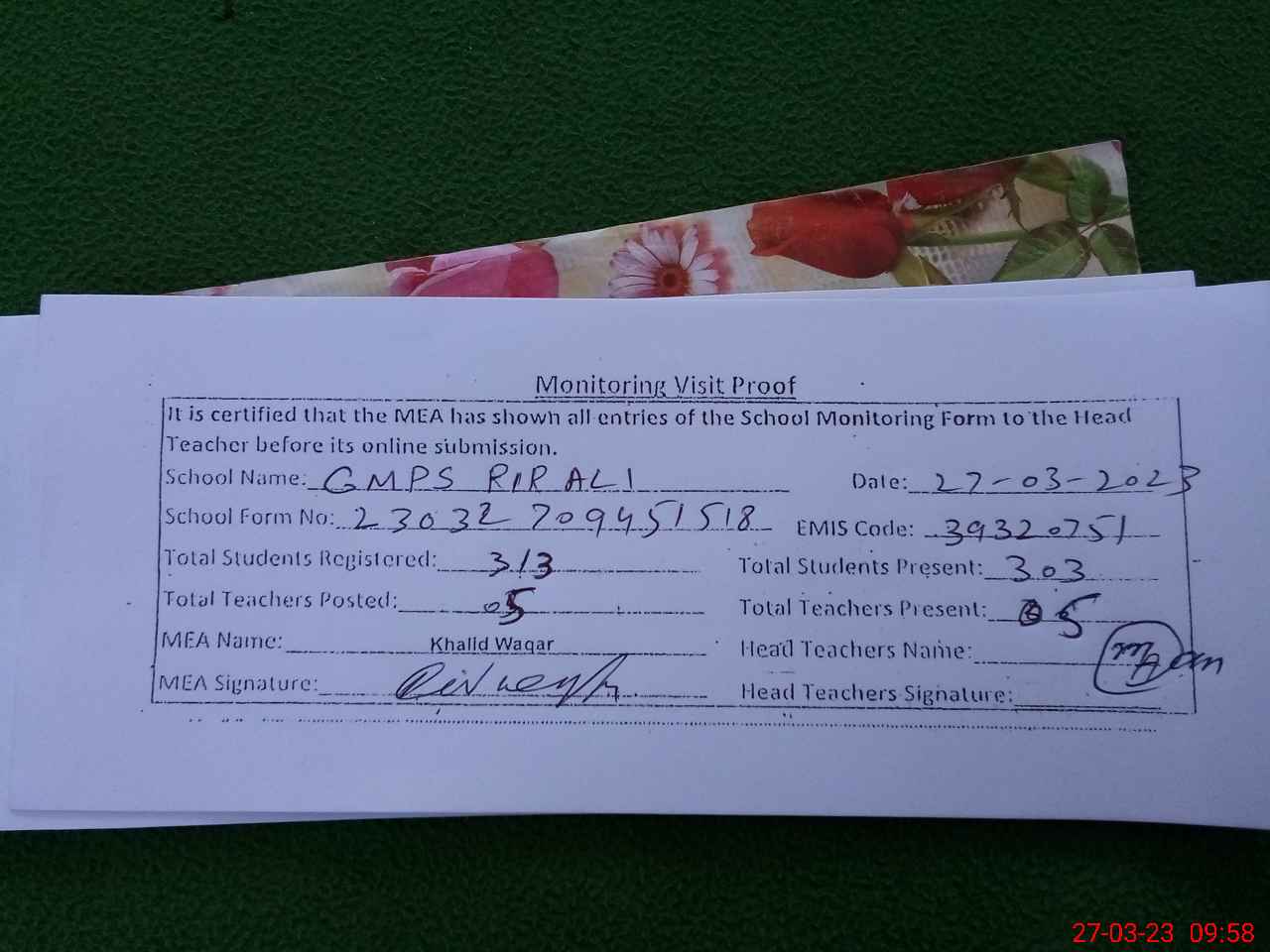 | EMIS Code: 39320751 | Name of School: GMPS PIR ALI | |||