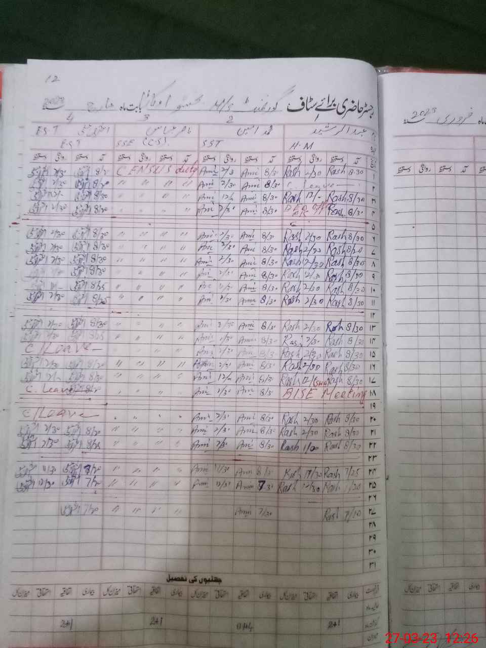 | CNIC | Full Name | Designation | R/C | Absence During Last Calender Month |