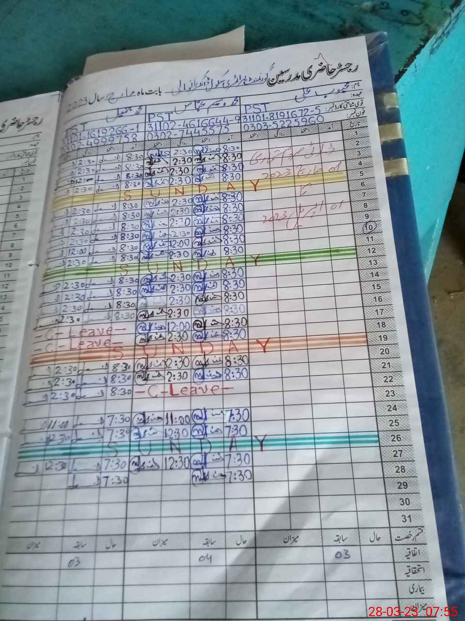 | Leave | Duty | Absent | Maternity | Medical | Ex- Pak |