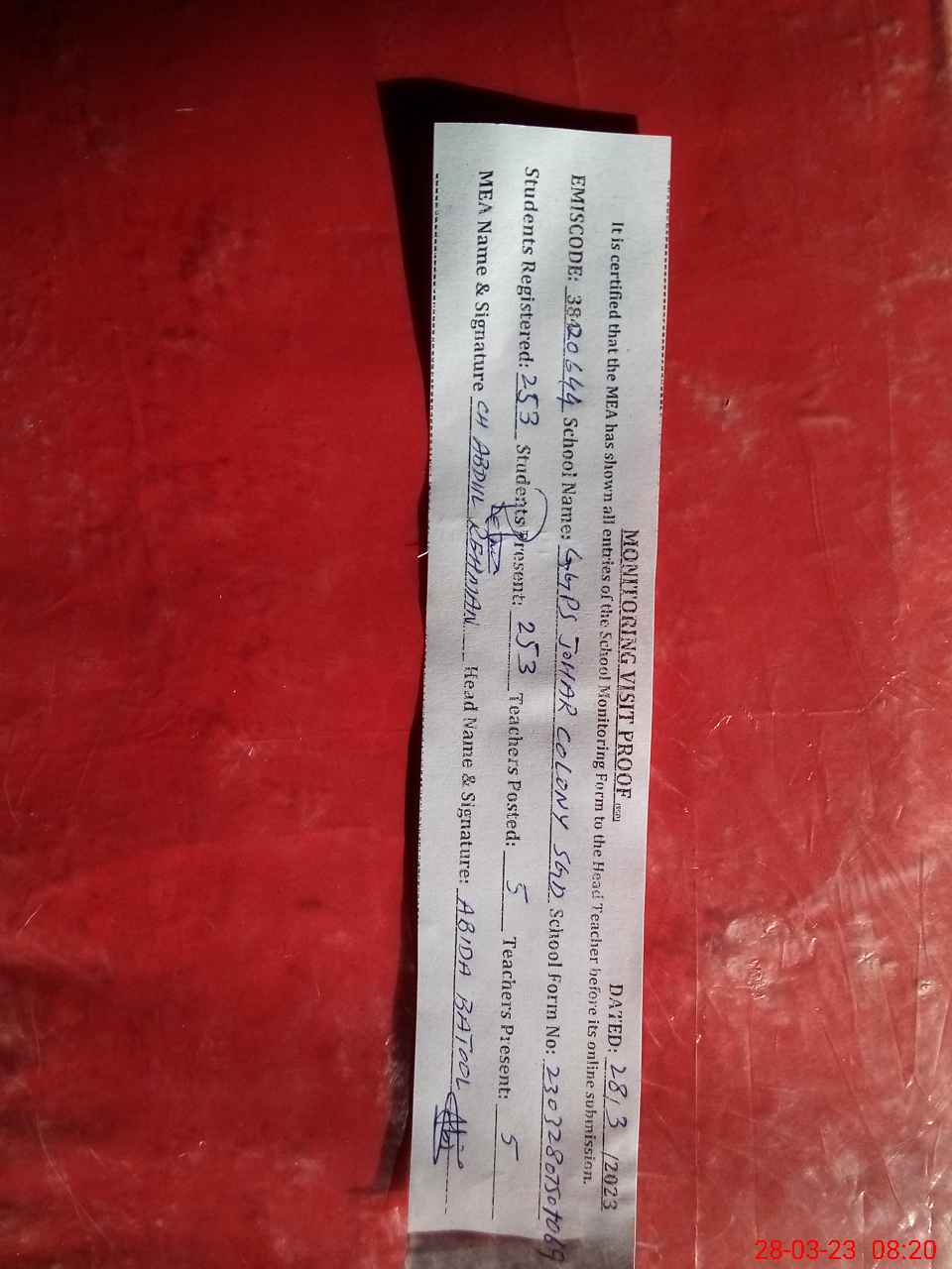 | EMIS Code: 38420644 | Name of School: GGPS JOHAR COLONY SARGODHA | |||