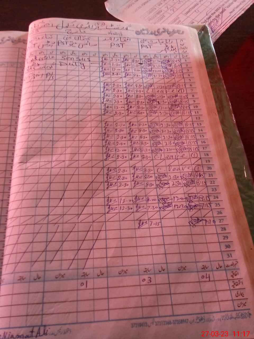 | CNIC | Full Name | Designation | R/C | Absence During Last Calender Month |