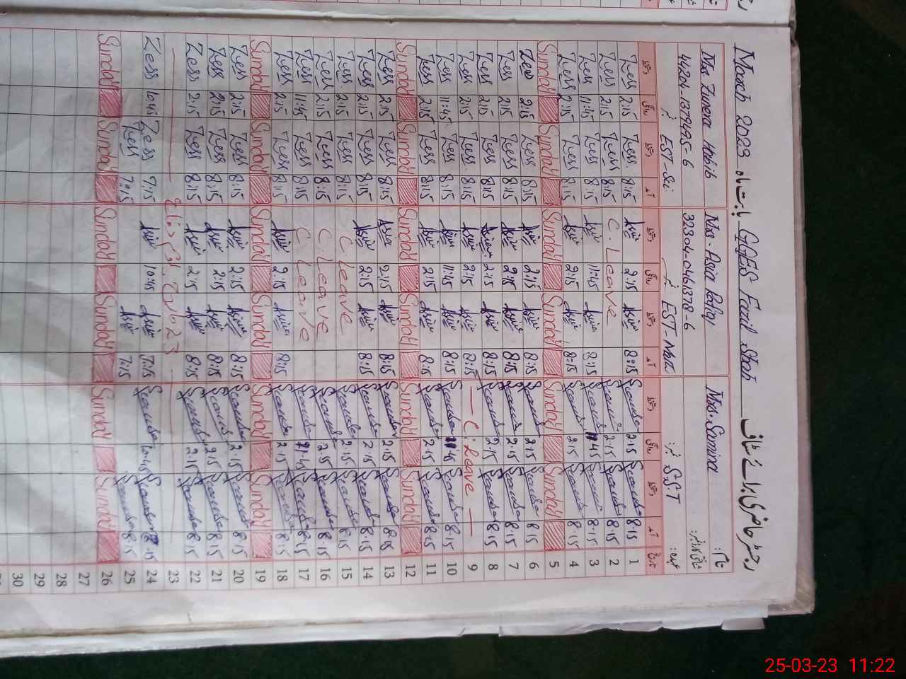 | Name: Zu**** Ha**** Designation: (School Headmaster's/Headmistress's) EST SCIENCE Phone/Cell Number: 03**** |