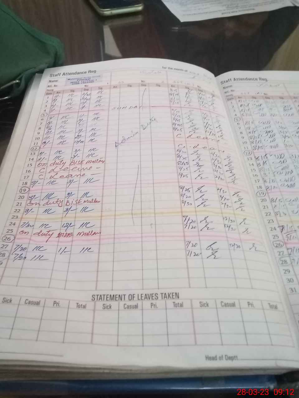 | No. of Students Present - Female | 0 | 0 | 0 | 0 | 0 | 0 | 0 | 0 | 0 | 0 | 0 | 0 | 0 | 0 | 0 | 0 |