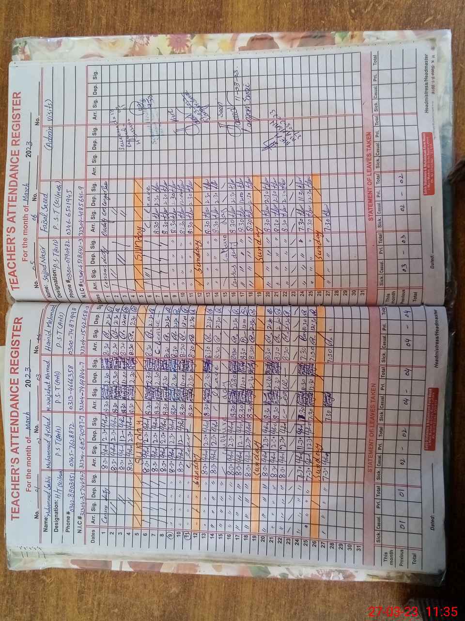 | CNIC | Full Name | Designation | R/C | Absence During Last Calender Month |