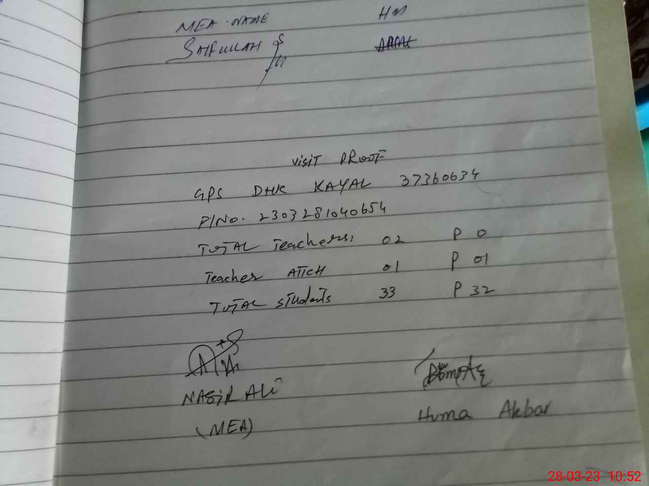 | Certified that this School was Inspected by the Undersigned MEA/DMO Today and the Information Stated Above is as Per Record. | |||||