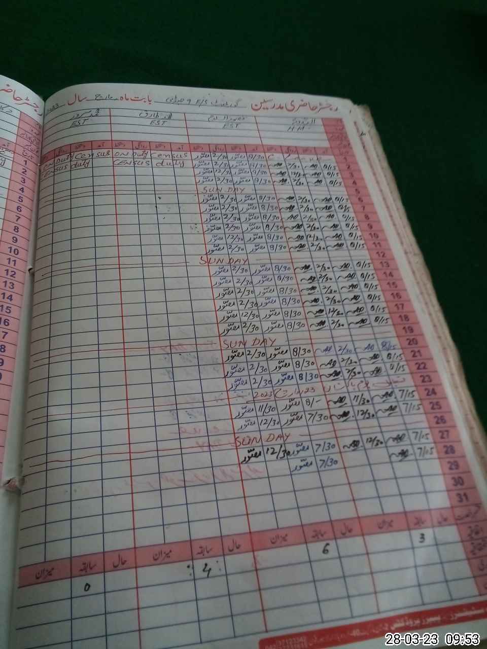 | CNIC | Full Name | Designation | R/C | Absence During Last Calender Month |