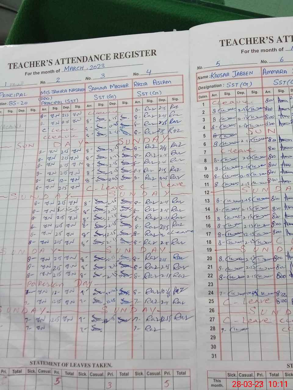 | Leave | Duty | Absent | Maternity | Medical | Ex- Pak |