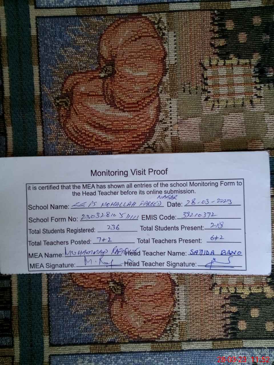 | EMIS Code: 39210372 | Name of School: GGPS MOHALLAH FAREED NAGAR | |||