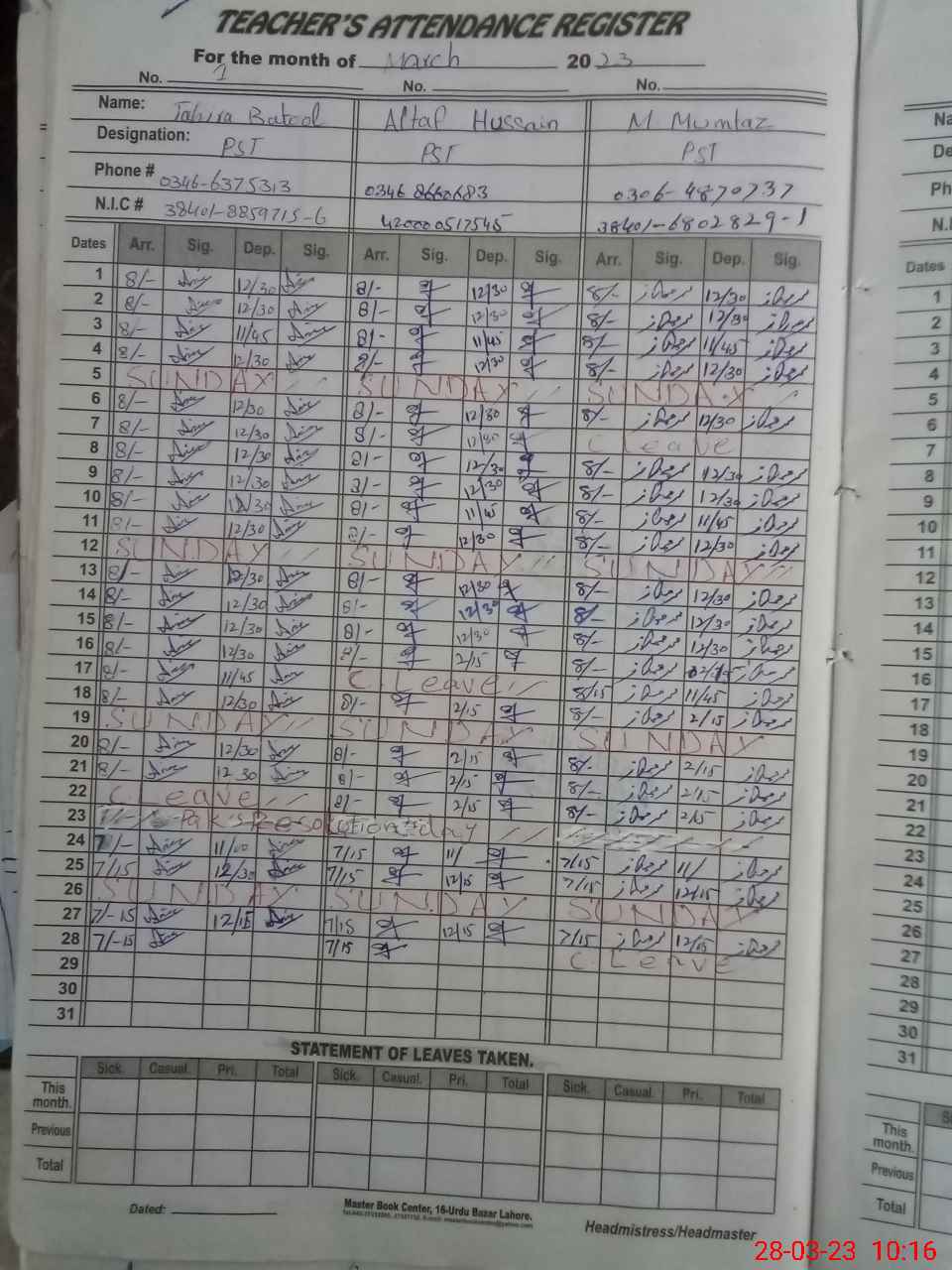 | Name: Ta**** Ba**** Designation: (School Headmaster's/Headmistress's) PST Phone/Cell Number: 03**** |