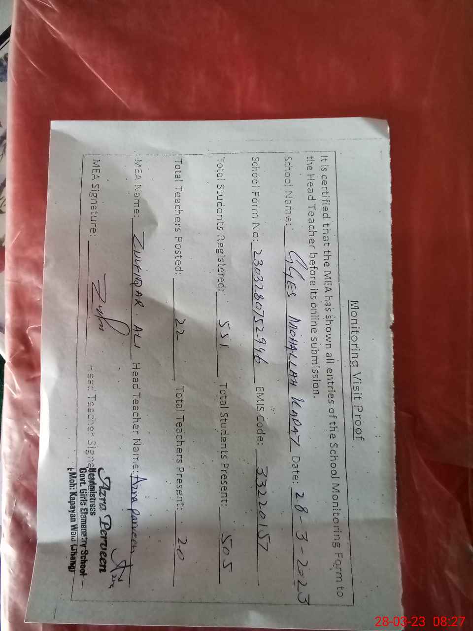 | EMIS Code: 33220157 | Name of School: GGES MOHALLAH KAPAYIYAN WALA | |||
