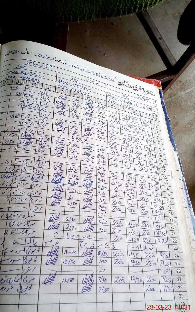 | Name: Sh**** Ab**** Designation: (School Headmaster's/Headmistress's) PST Phone/Cell Number: 03**** |