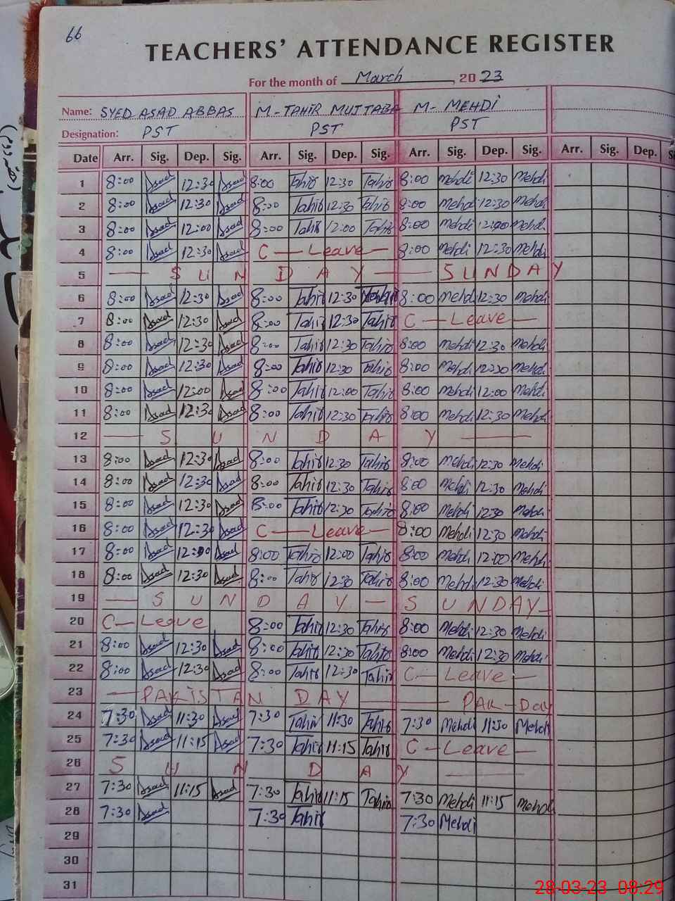 | Name: Mu**** Ir**** Designation: (School Headmaster's/Headmistress's) PST Phone/Cell Number: 03**** |