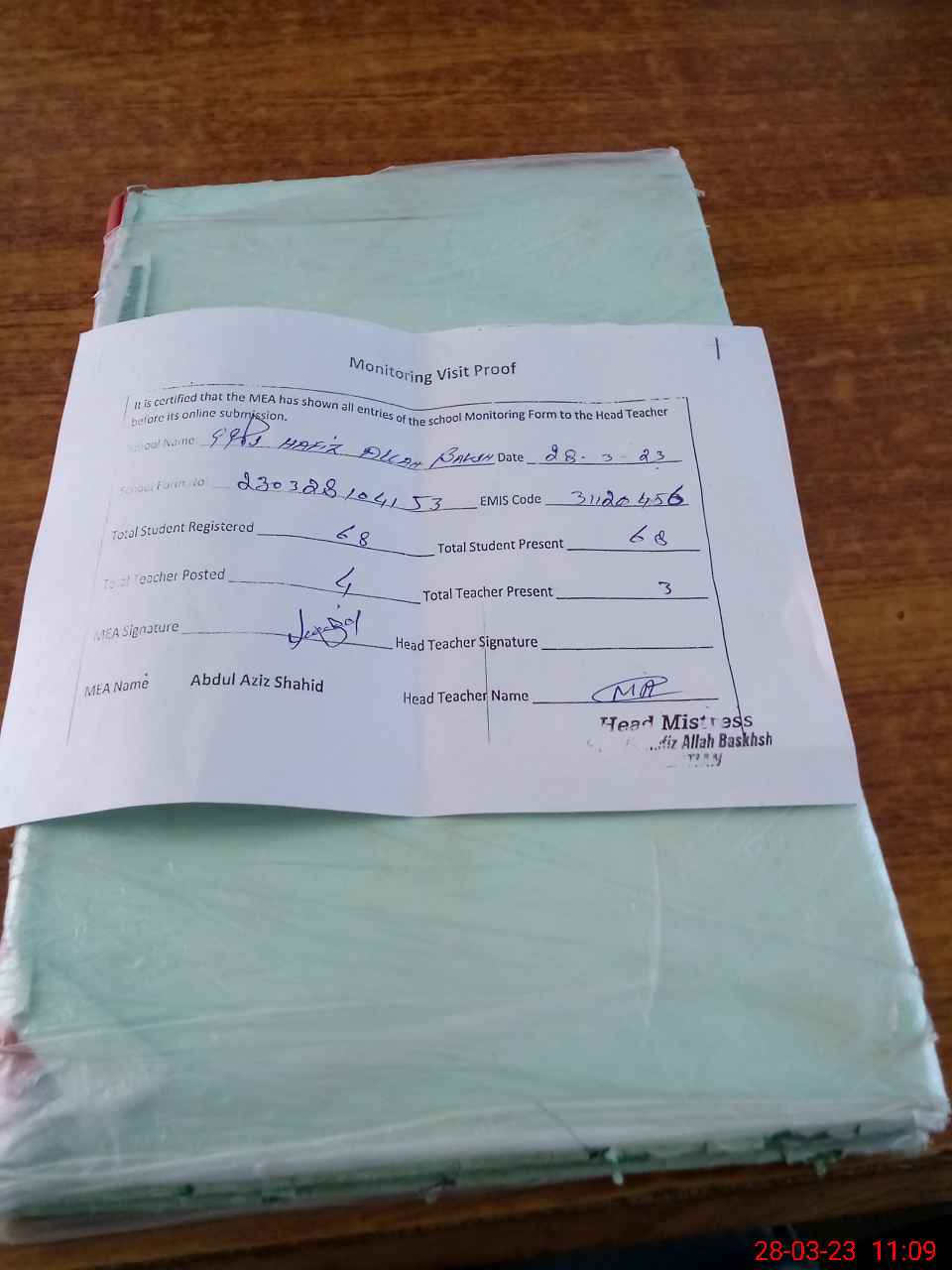 | EMIS Code: 31120456 | Name of School: GGPS HAFIZ ALLAH BUKHASH | |||
