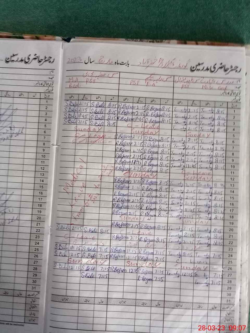 | Leave | Duty | Absent | Maternity | Medical | Ex- Pak |