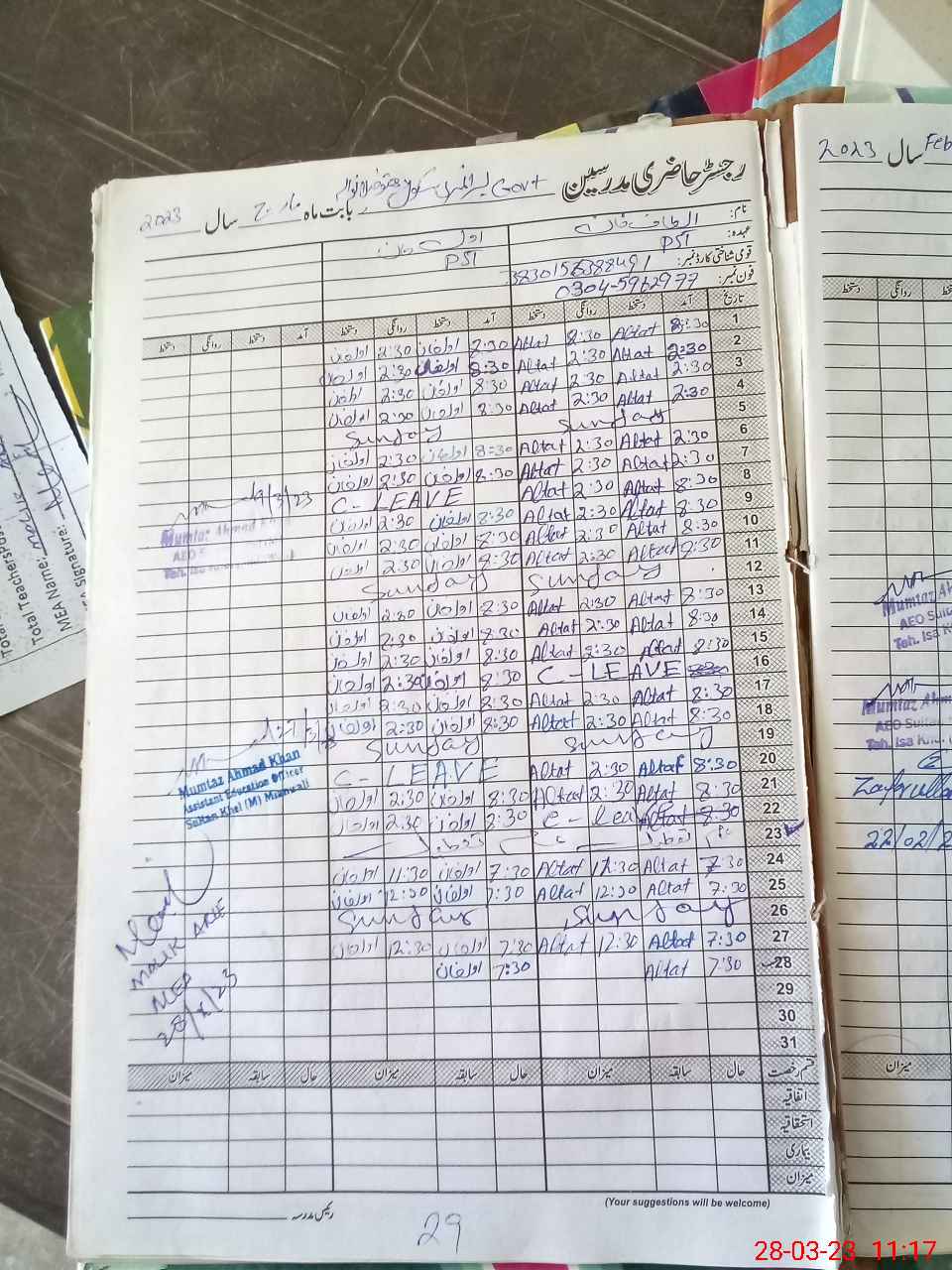 | Name: Al**** Kh**** Designation: (School Headmaster's/Headmistress's) PST Phone/Cell Number: 03**** |