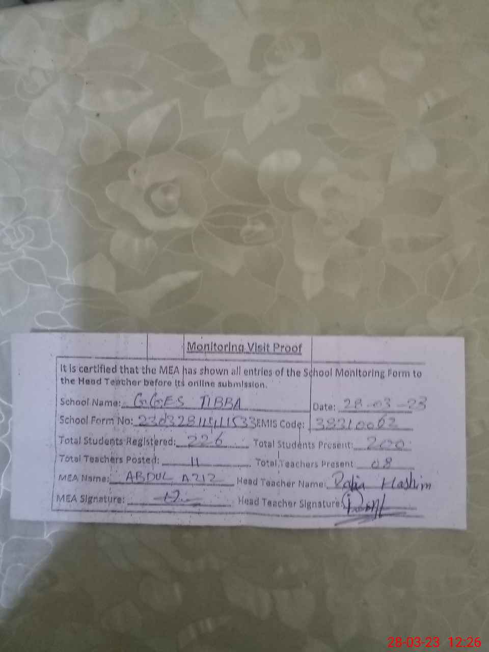 | EMIS Code: 38310062 | Name of School: GGES TIBBA SHARIF | |||