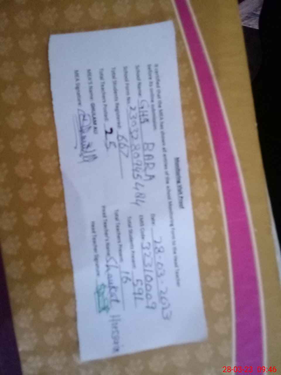 | Name: SH**** HU**** Designation: (School Headmaster's/Headmistress's) SHM Phone/Cell Number: 03**** |