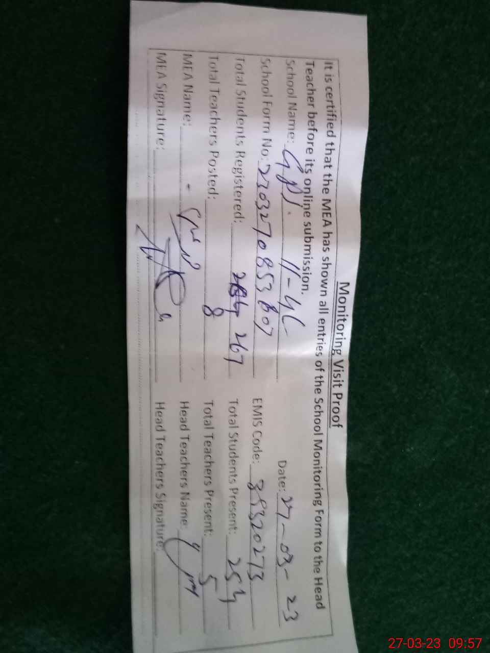 | Name: FI**** HU**** Designation: (School Headmaster's/Headmistress's) PST H MASTER Phone/Cell Number: 03**** |