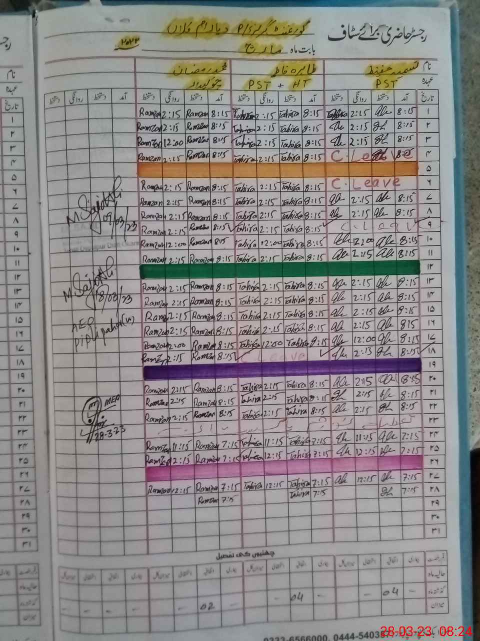| CNIC | Full Name | Designation | R/C | Absence During Last Calender Month |