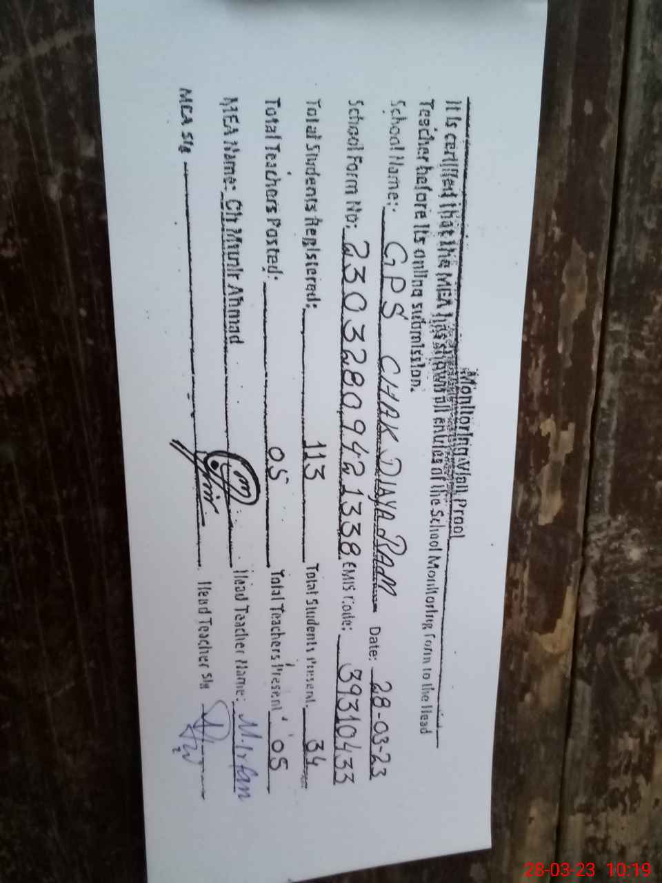 | EMIS Code: 39310433 | Name of School: GPS DIYA RAAM | |||