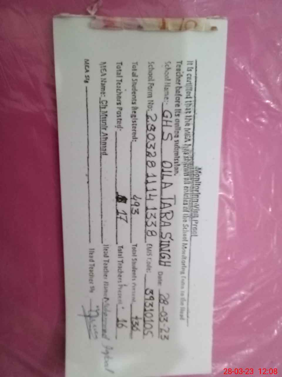 | EMIS Code: 39310105 | Name of School: GHS QILA TARA SINGH | |||