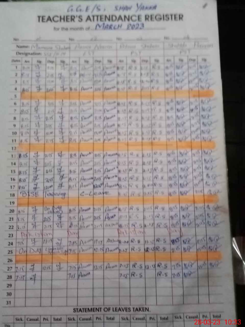 | Leave | Duty | Absent | Maternity | Medical | Ex- Pak |