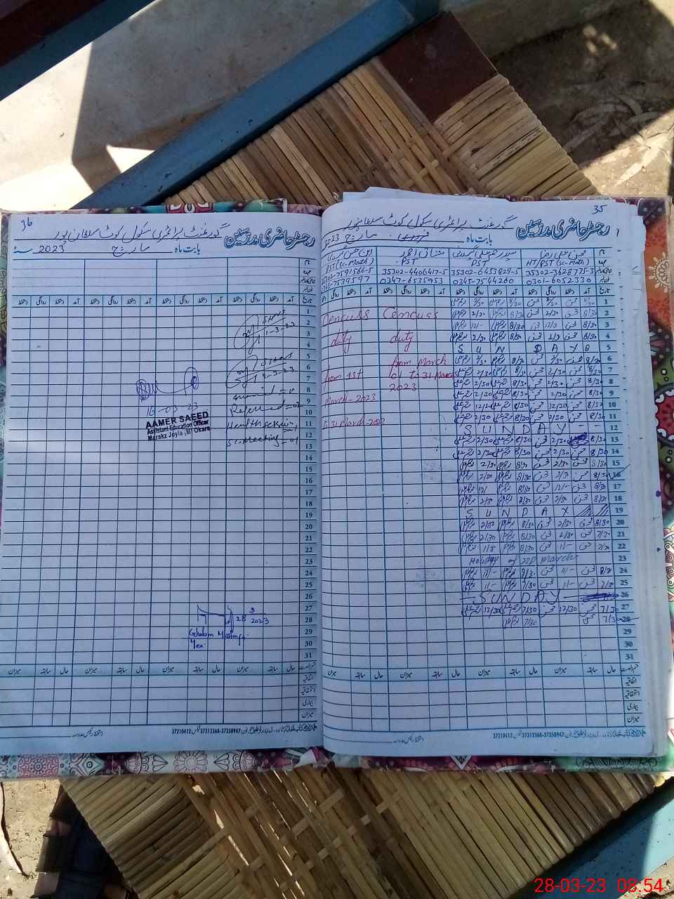 | Remarks (Use Separate Page if Required): Head teacher is on cencuss duty the NSB and FTF record not available in the school therefore the said information is lying unfilled Lnd file still not working owing to software and server issues Overall cleaning level is almost poor | |||||