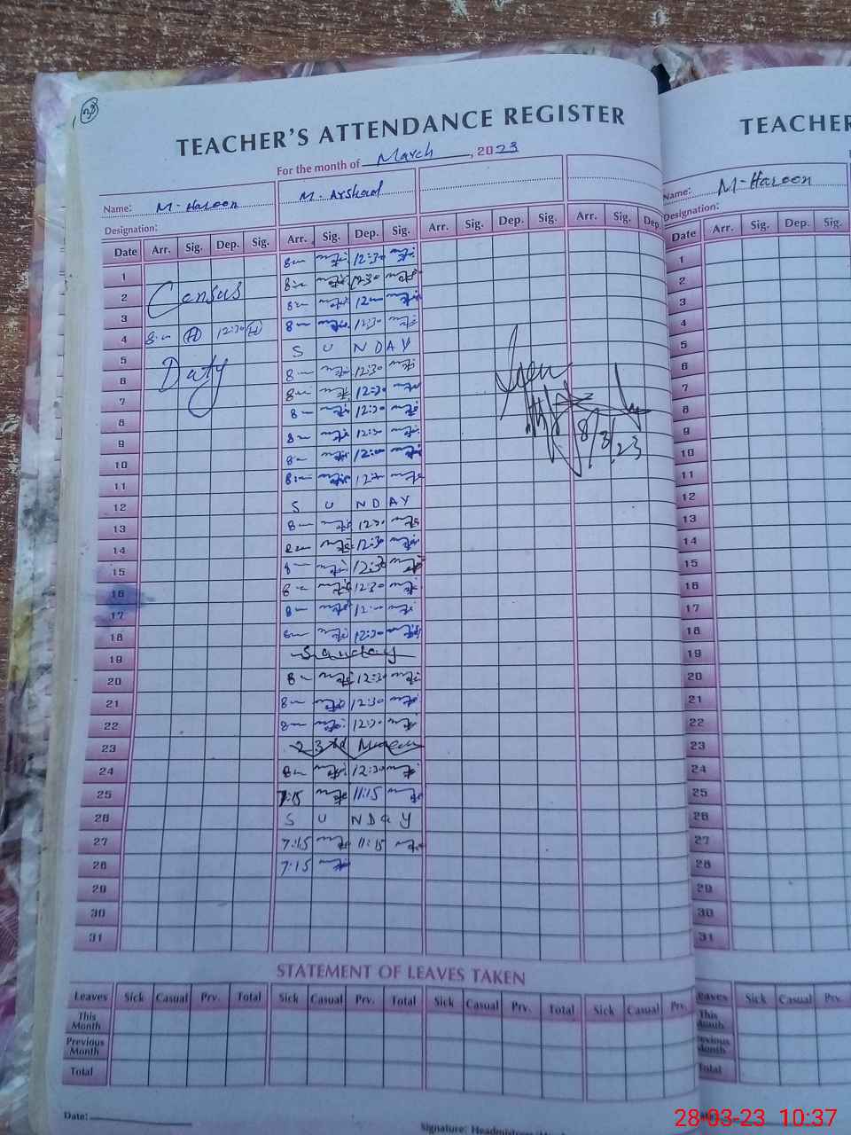 | Name: MU**** HA**** Designation: (School Headmaster's/Headmistress's) PST Phone/Cell Number: 03**** |