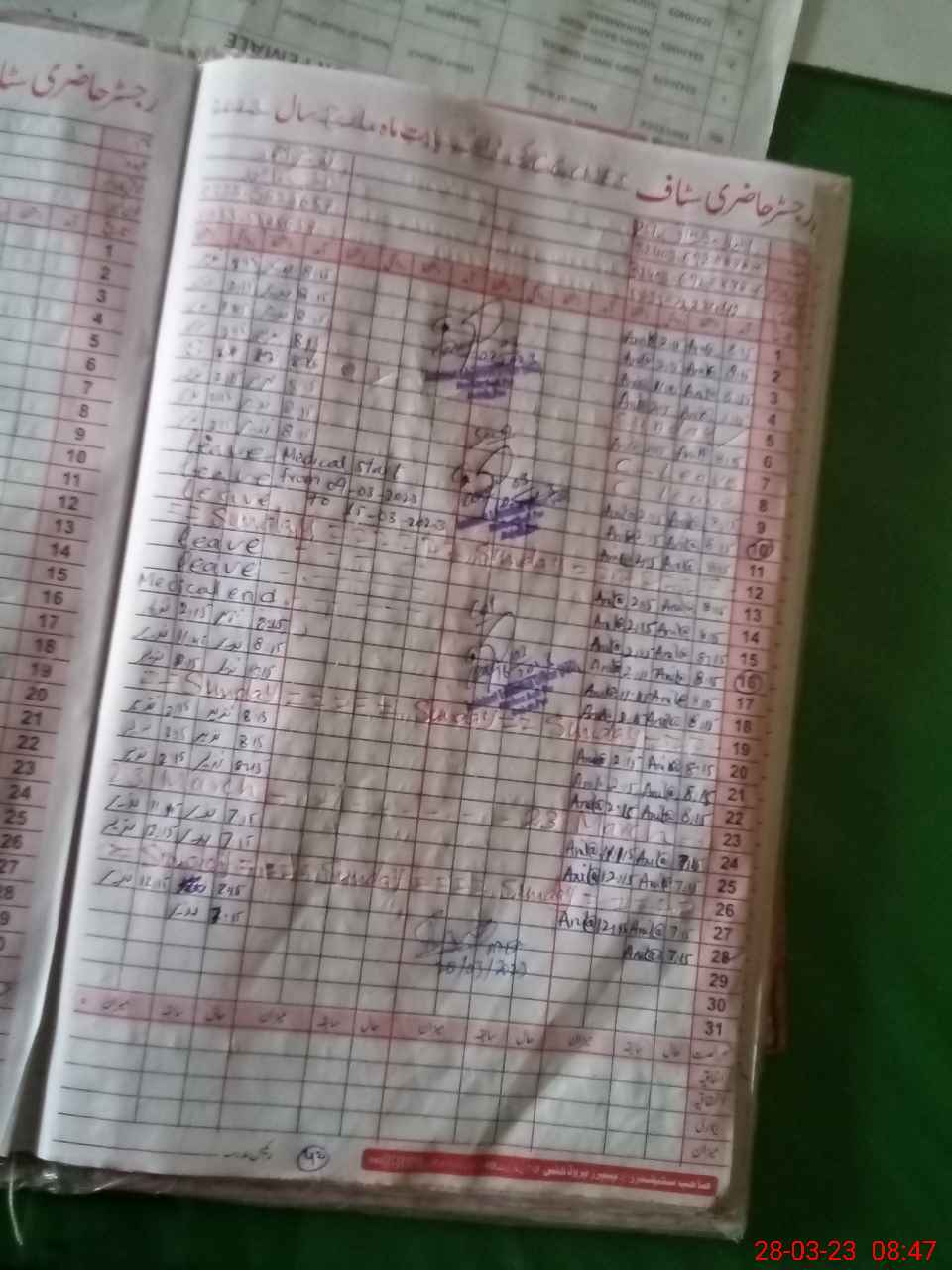 | Leave | Duty | Absent | Maternity | Medical | Ex- Pak |