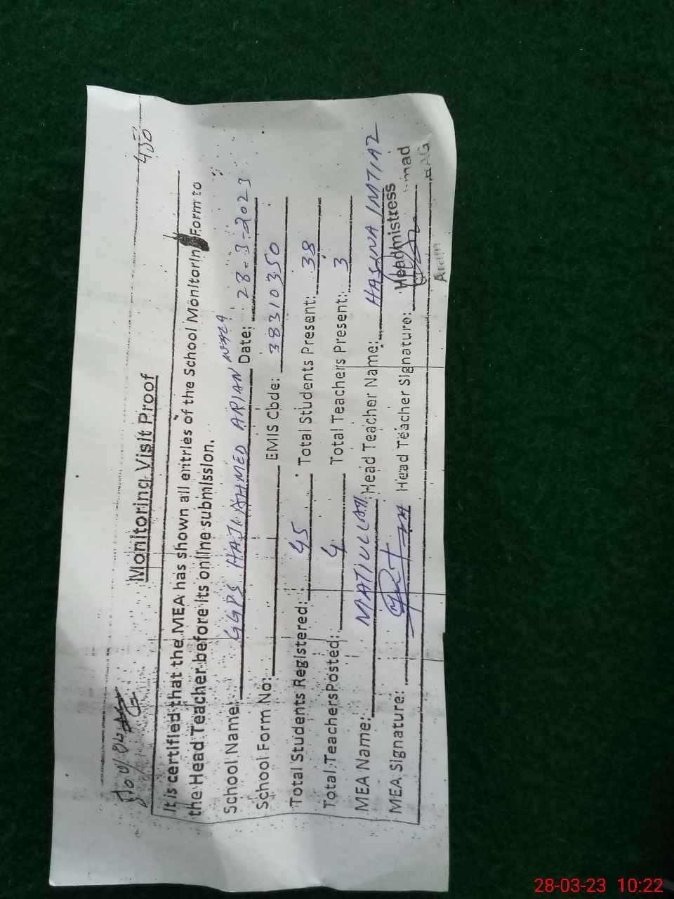 | EMIS Code: 38310350 | Name of School: GGPS HAJI AHMED ARAIN WALA | |||