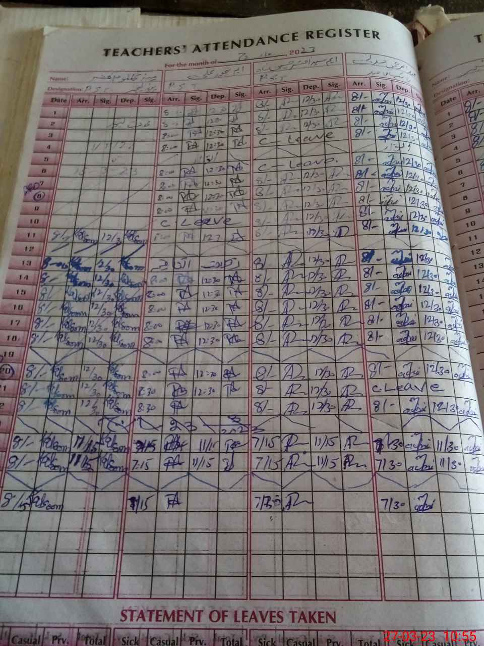 | Leave | Duty | Absent | Maternity | Medical | Ex- Pak |
