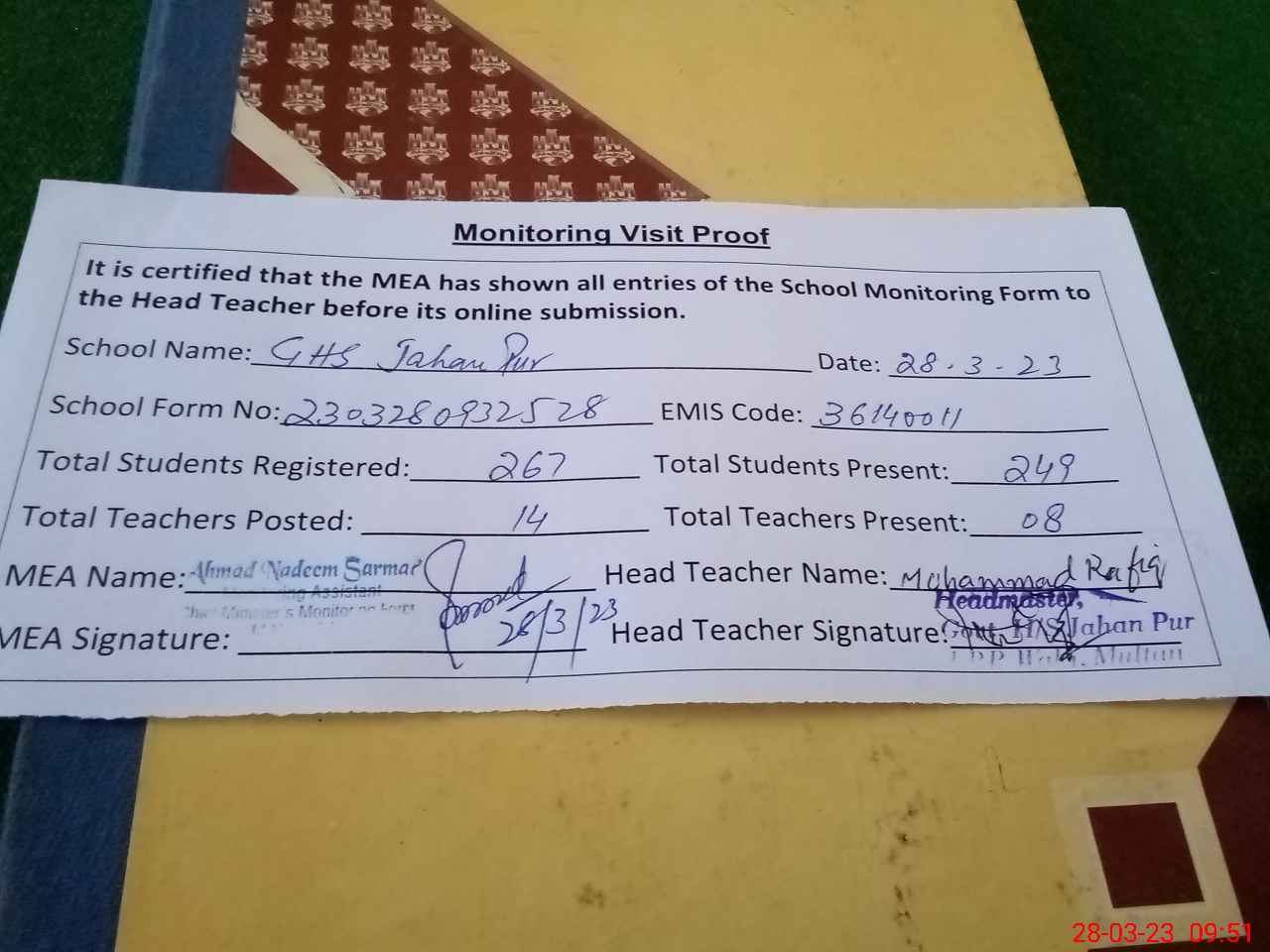 | EMIS Code: 36140011 | Name of School: GHS JAHAN PUR JALALPUR PIRWALA | |||