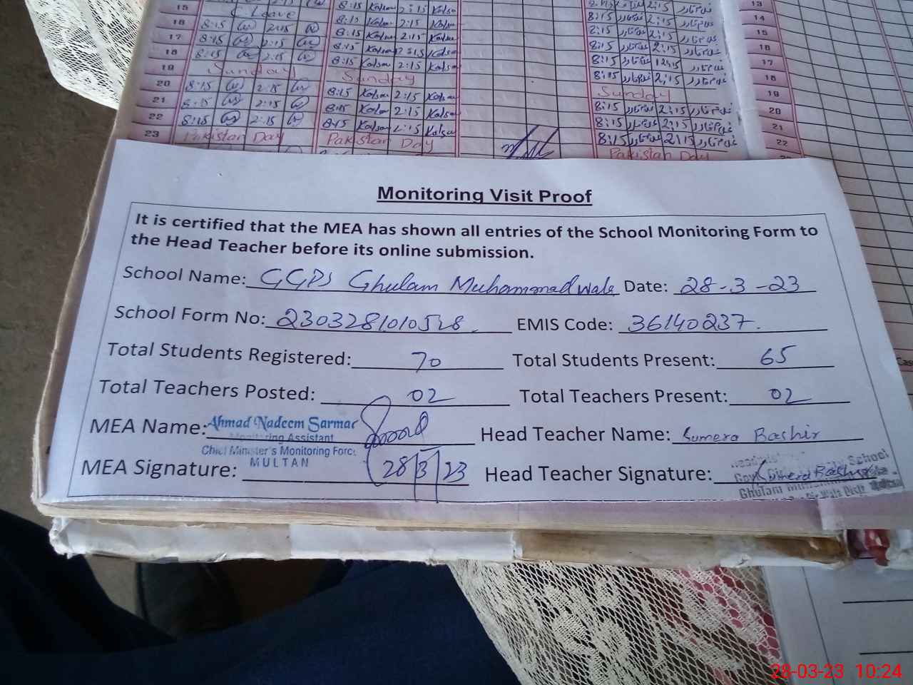 | EMIS Code: 36140237 | Name of School: GGPS GHULAM MOHAMMAD WALA | |||