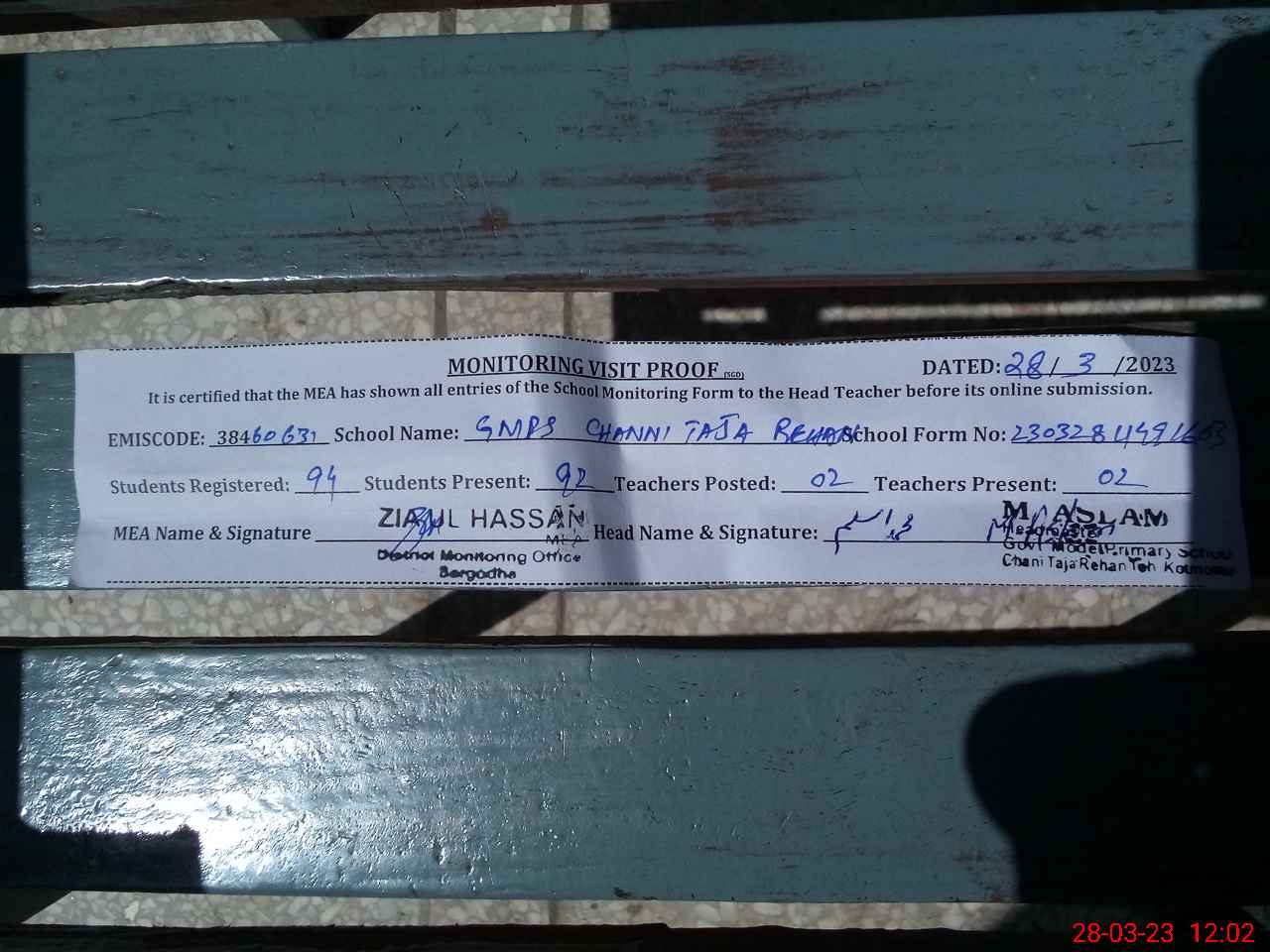 | EMIS Code: 38460631 | Name of School: GMPS MODEL CHHANI TAJA REHAN | |||