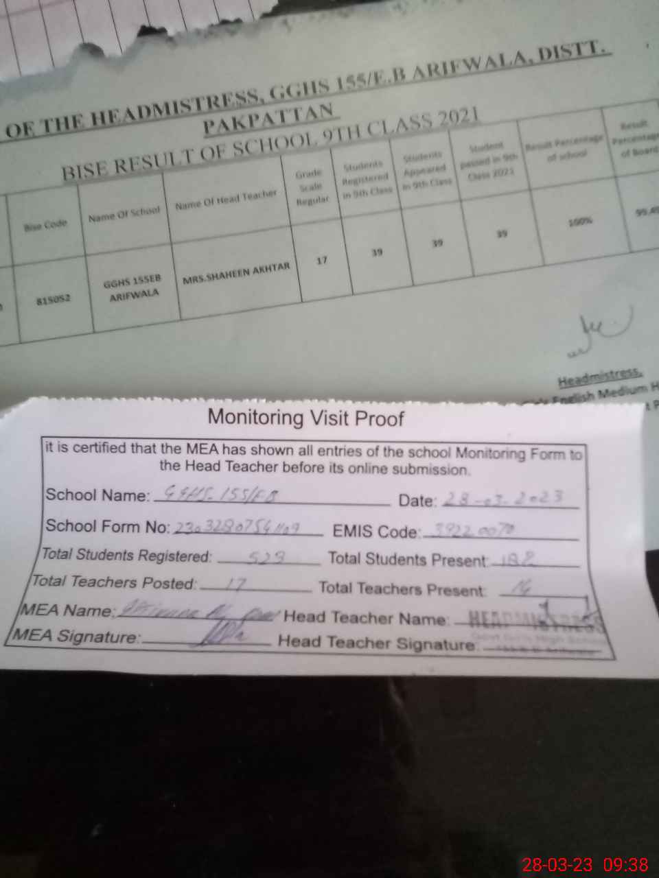 | Certified that this School was Inspected by the Undersigned MEA/DMO Today and the Information Stated Above is as Per Record. | |||||