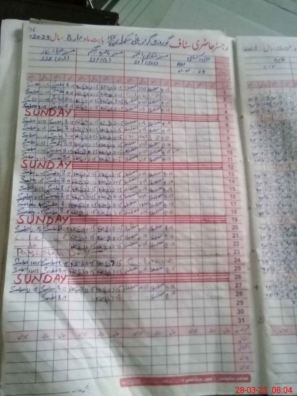 | 36**** | MU**** NA**** | JUNIOR CLERK | Regular | 0 | 2 | 0 | 0 | 0 | 0 | 0 | 0 | 0 | Casual |