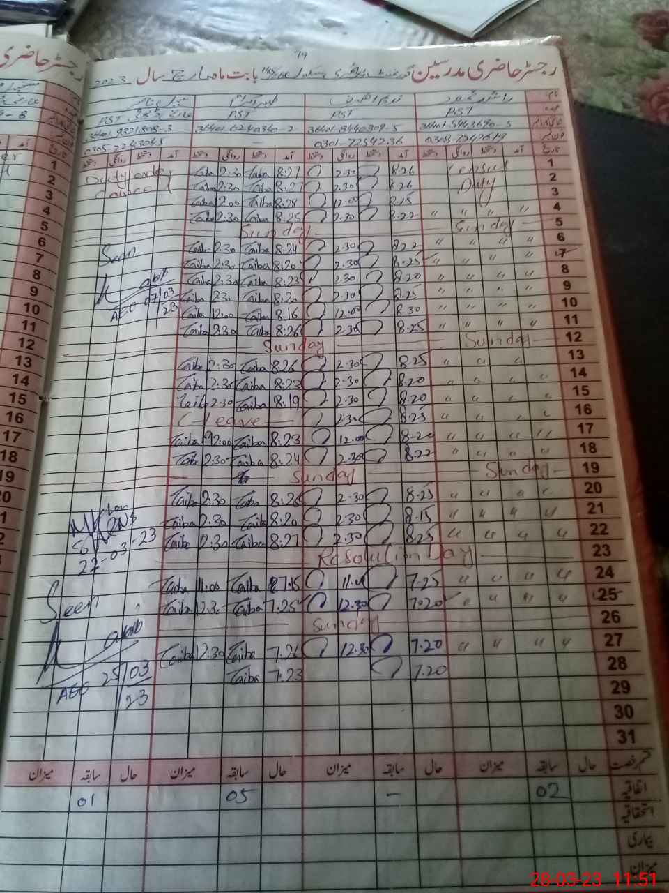 | Name: RA**** MA**** Designation: (School Headmaster's/Headmistress's) PST Phone/Cell Number: 03**** |