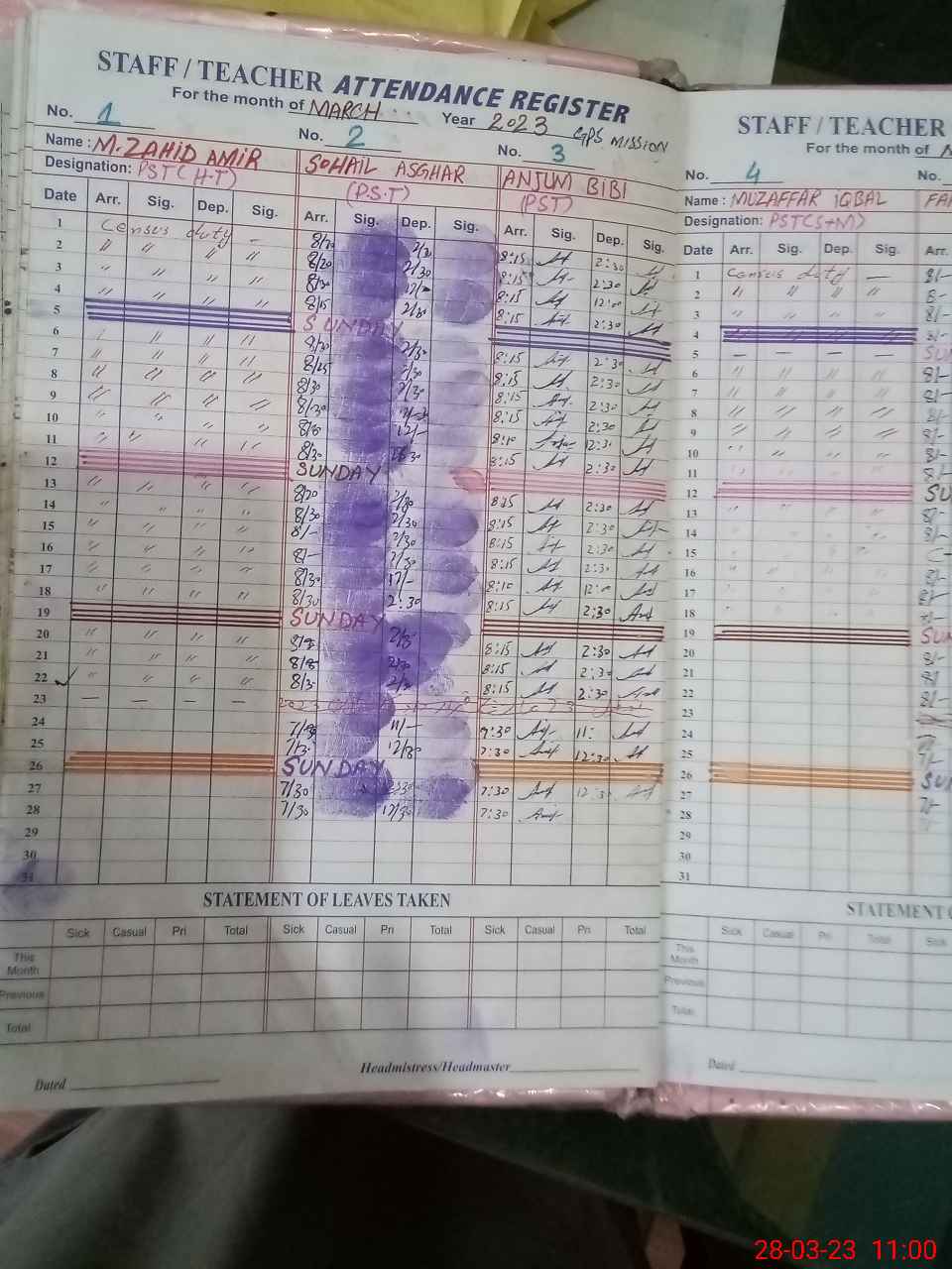 | Name: SY**** MU**** ULHA**** Designation: (School Headmaster's/Headmistress's) PST Phone/Cell Number: 03**** |