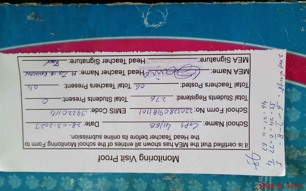 | Name: MU**** AY**** KH**** Designation: (School Headmaster's/Headmistress's) PST Phone/Cell Number: 03**** |