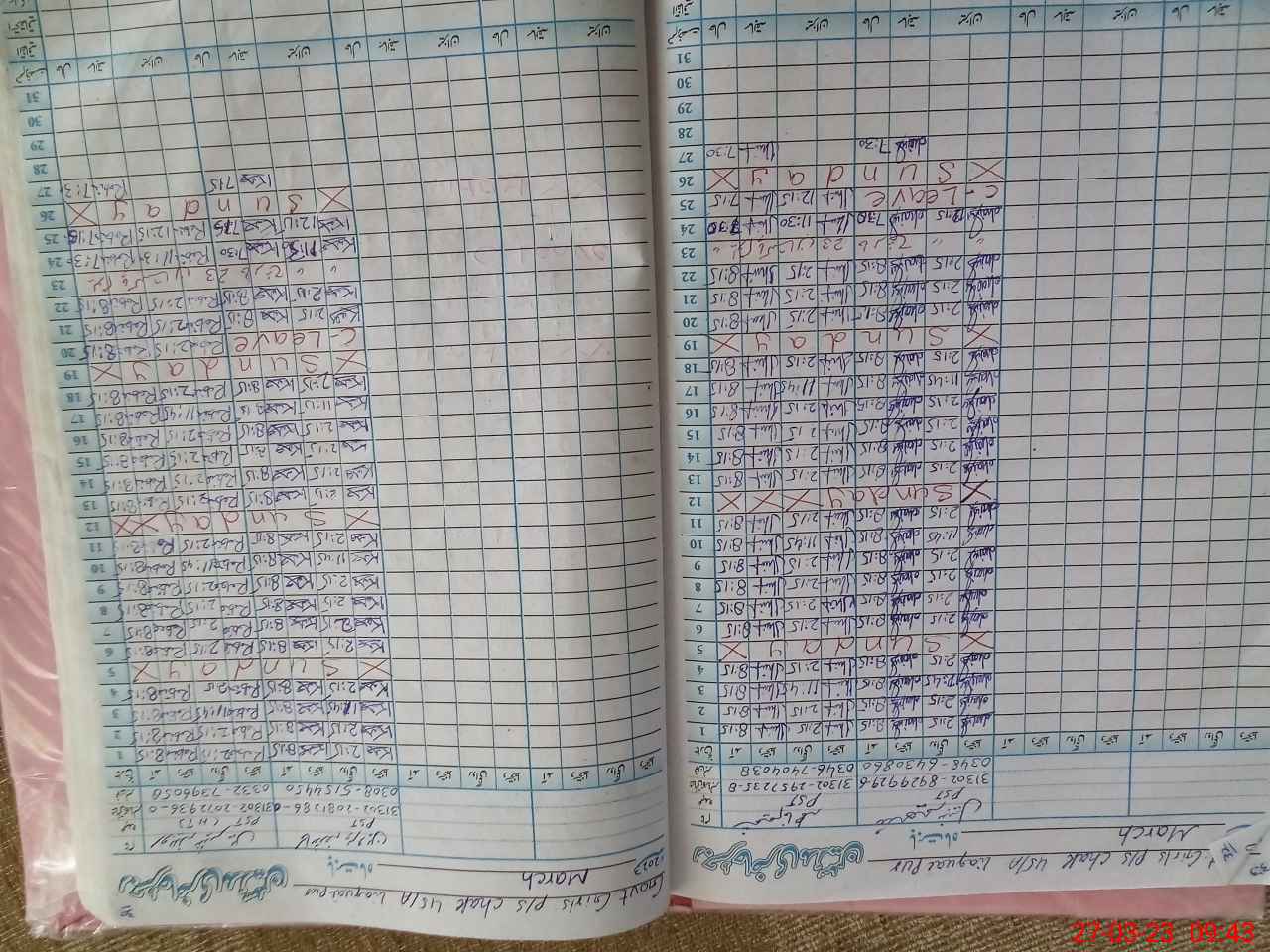| Total Students Present | 30 | 0 | 31 | 23 | 26 | 14 | 9 | 15 | 148 | |||||||