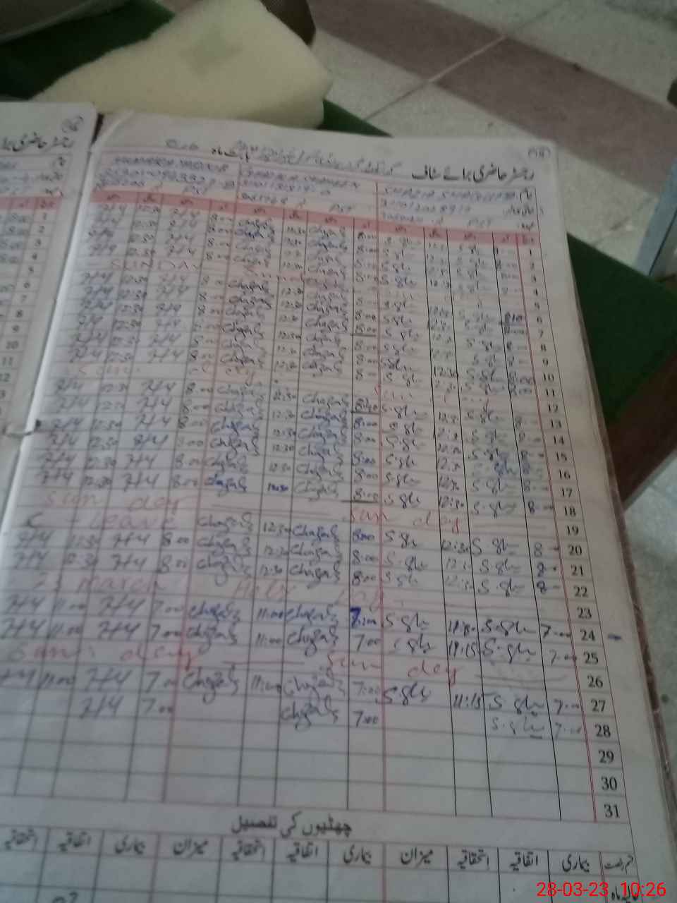 | CNIC | Full Name | Designation | R/C | Absence During Last Calender Month |