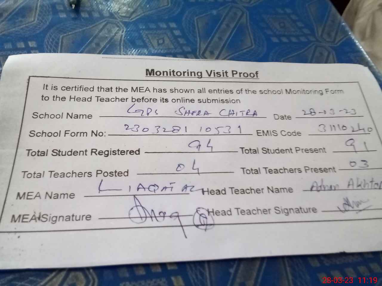 | EMIS Code: 31110240 | Name of School: GPS SHERA CHITRA | |||