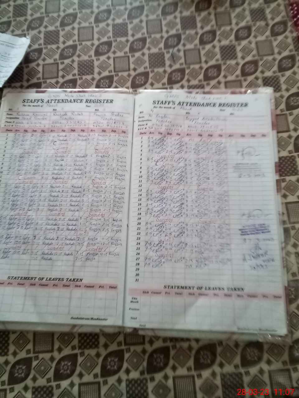 | Name: RE**** KA**** Designation: (School Headmaster's/Headmistress's) PST Phone/Cell Number: 03**** |