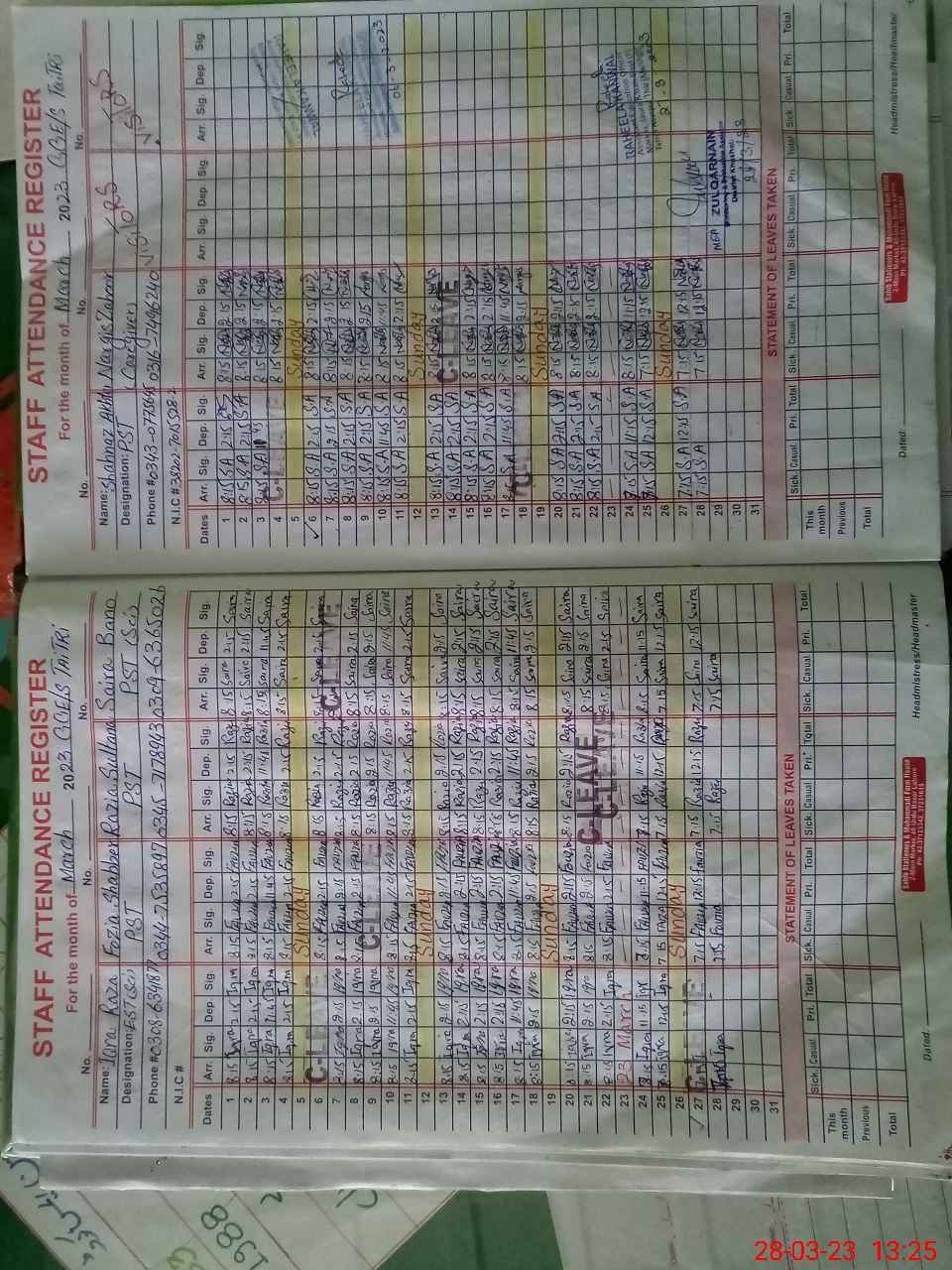 | CNIC | Full Name | Designation | R/C | Absence During Last Calender Month |
