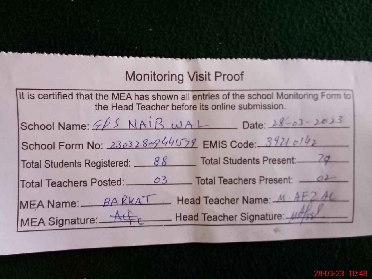 | EMIS Code: 39210142 | Name of School: GPS NAIB WAL | |||