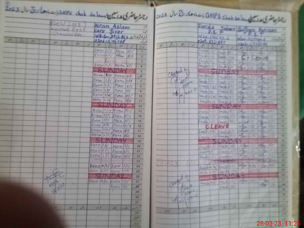 | CNIC | Full Name | Designation | R/C | Absence During Last Calender Month |