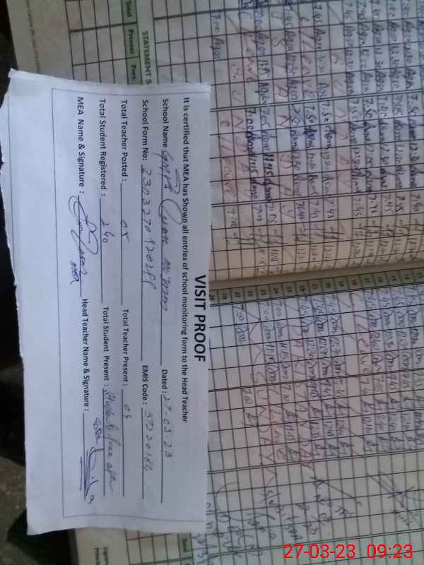 | Attendance Register | Head Teacher | MEA with School | Visit Proof |
